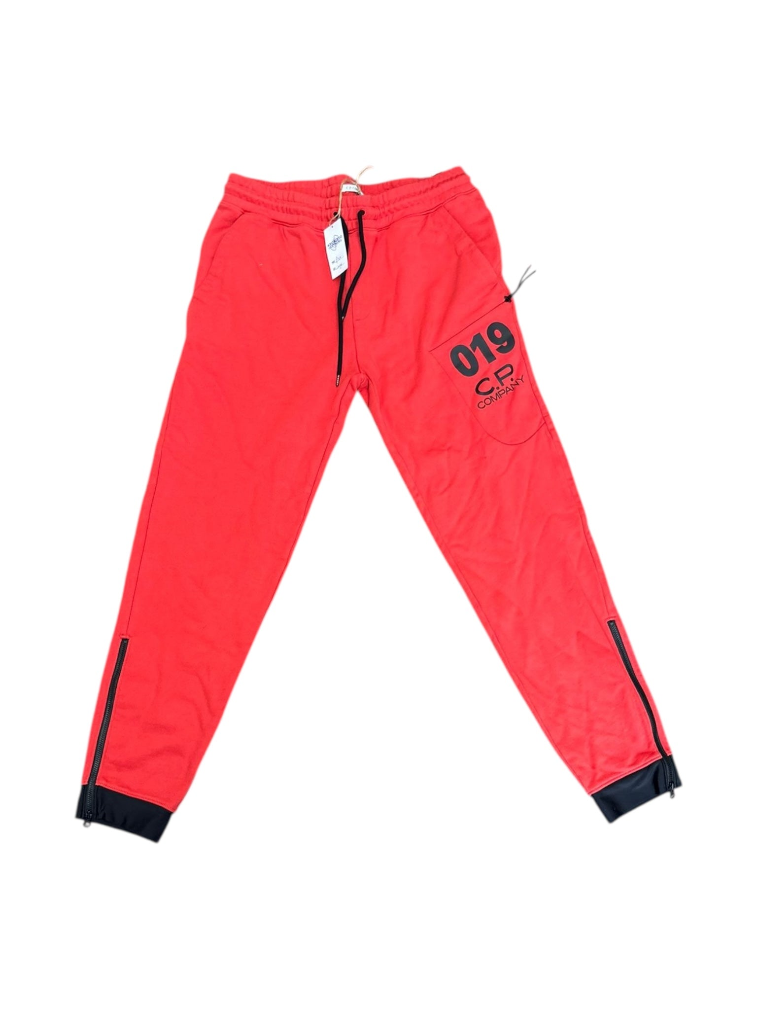 CP company red tracksuit bottoms size L is backordered and will ship as soon as it is back in stock.